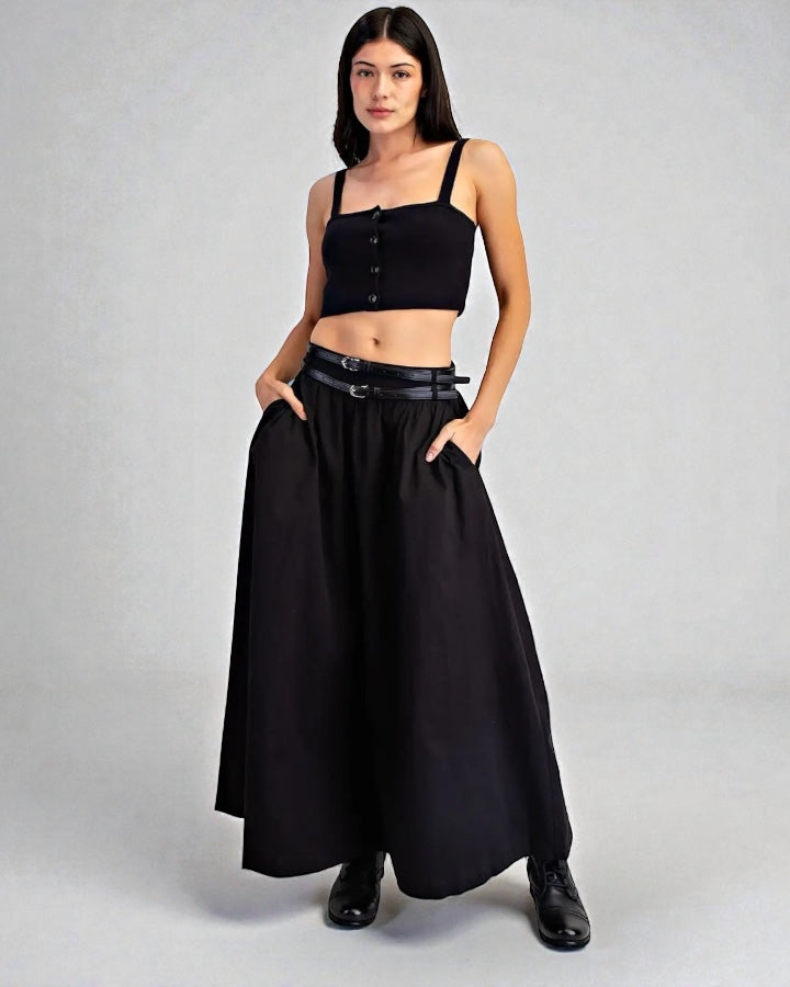 Double Belted Woven Maxi Skirt