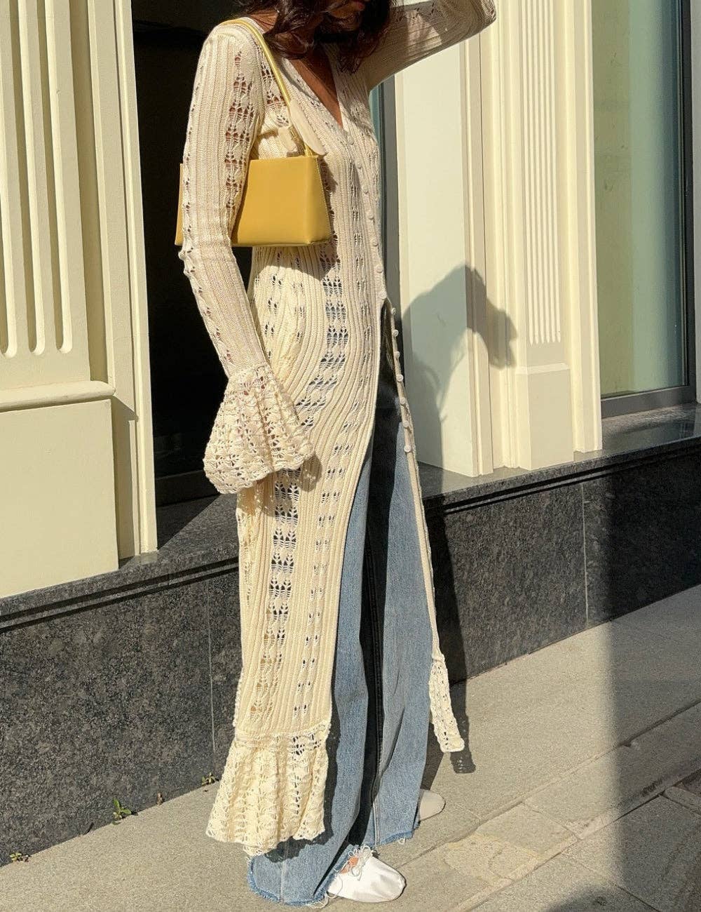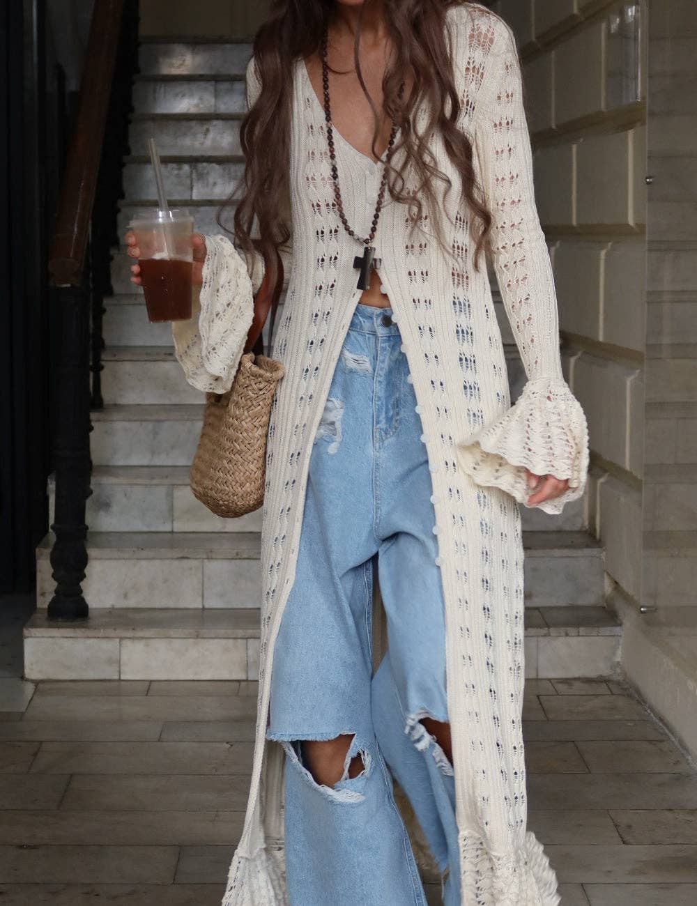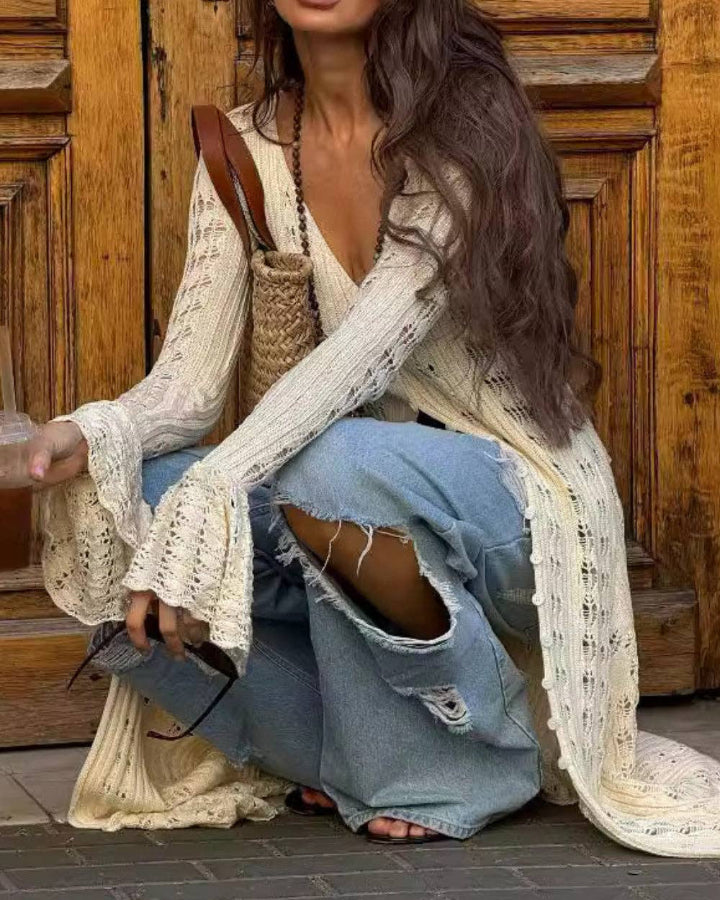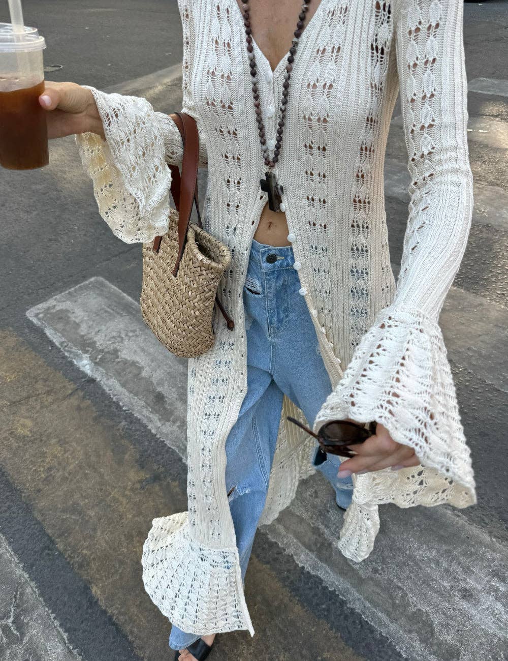 Soft, flowy, and just a little romantic 🤍 This ivory crochet cardigan has flared sleeves and a breezy feel that makes every outfit look effortlessly put together—perfect for golden-hour strolls or coffee runs