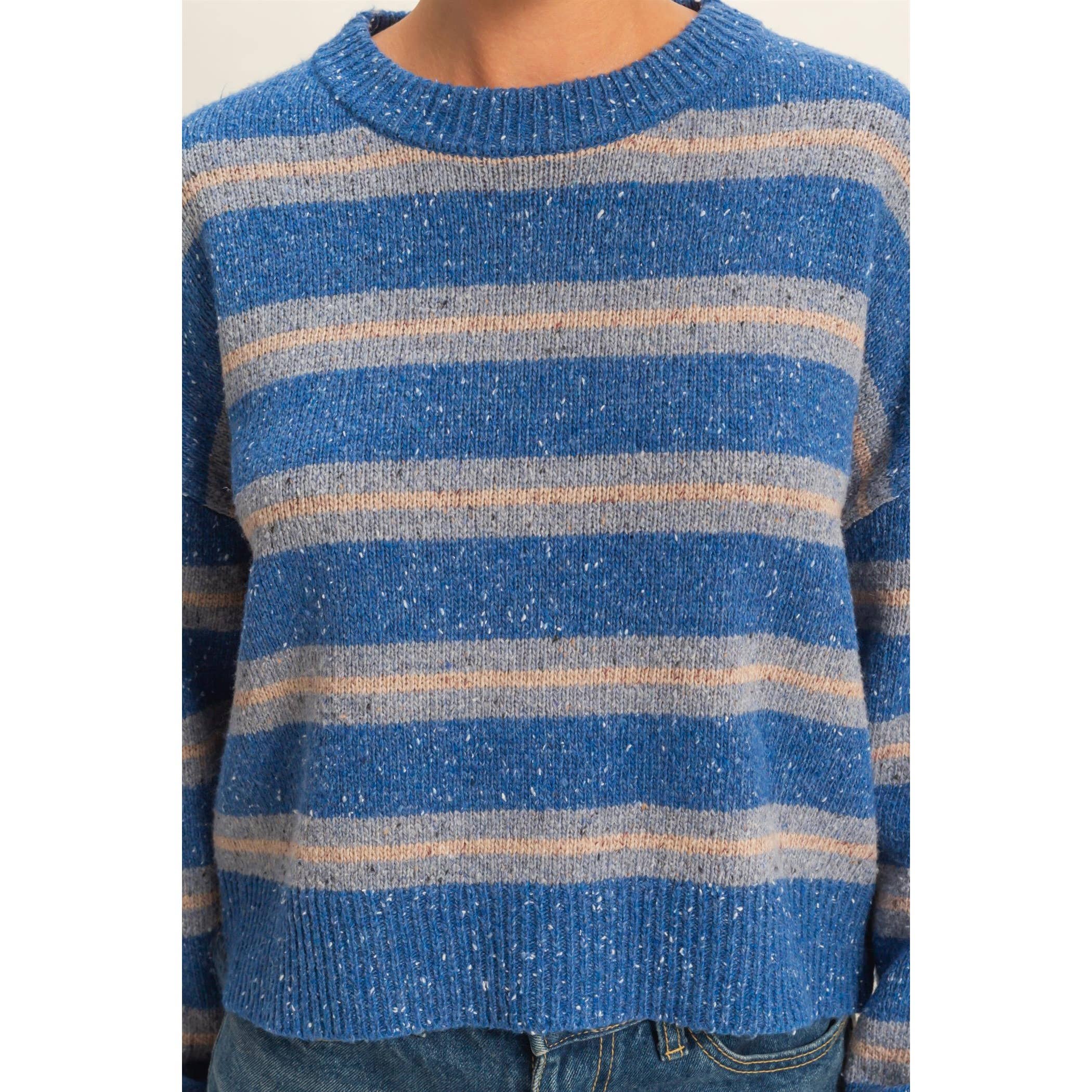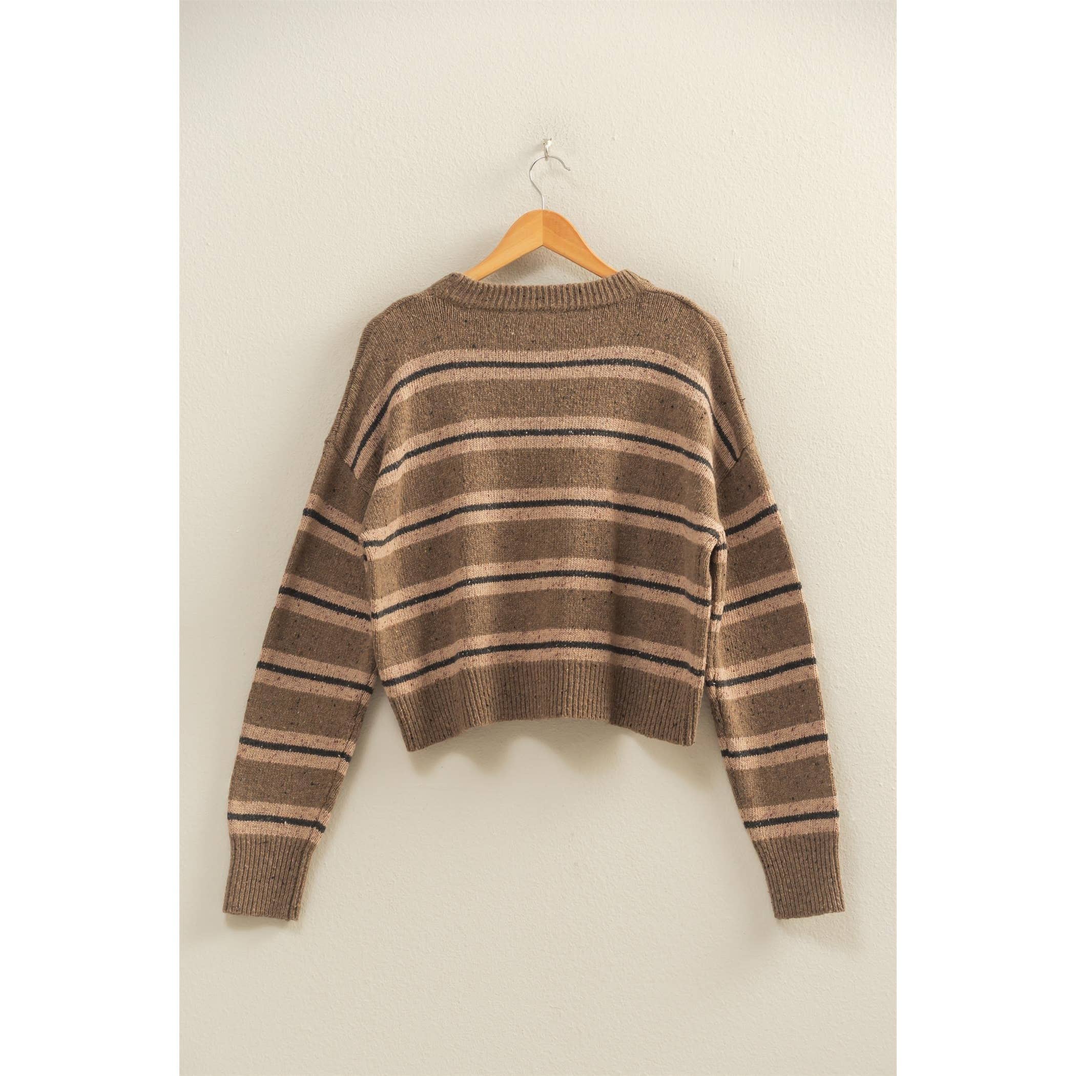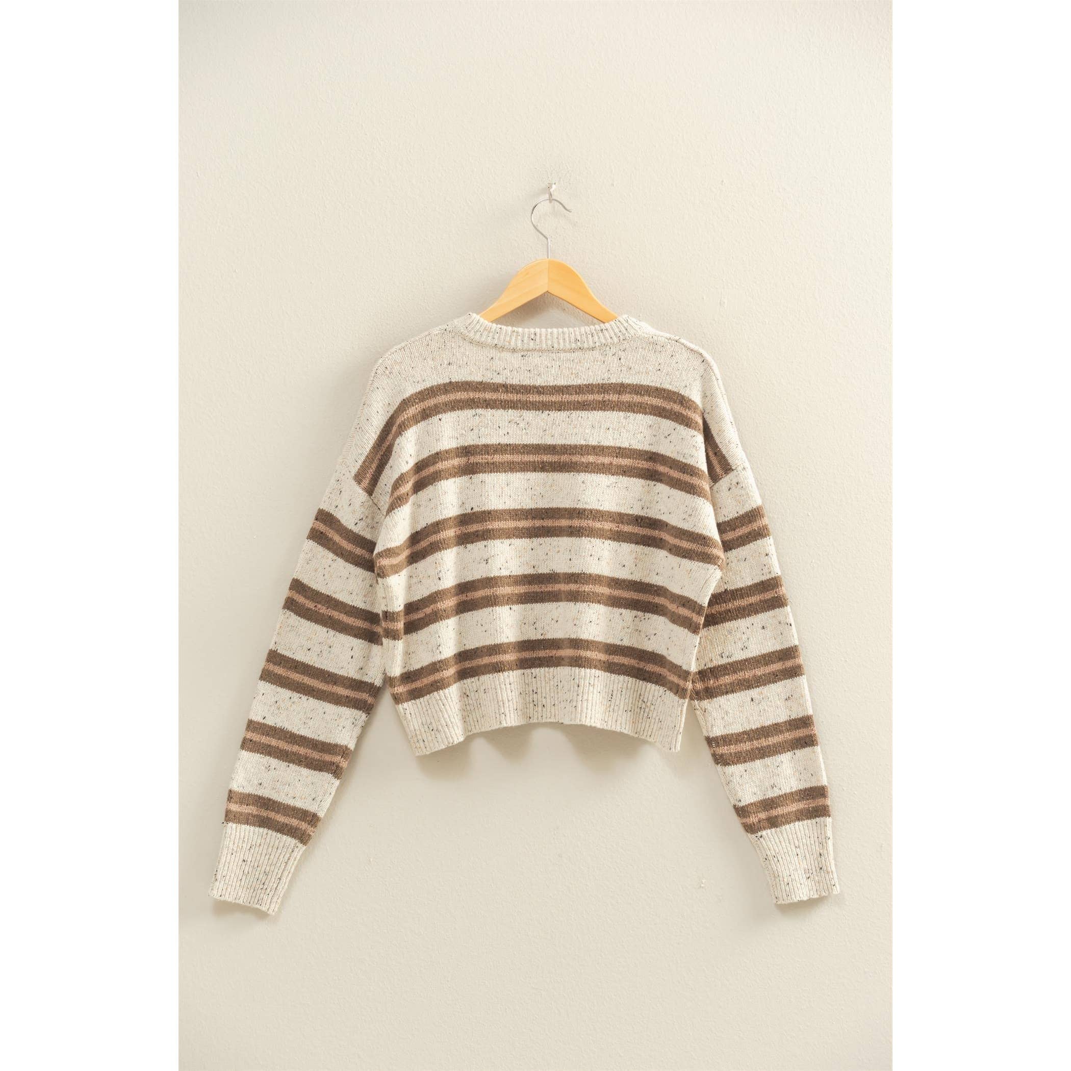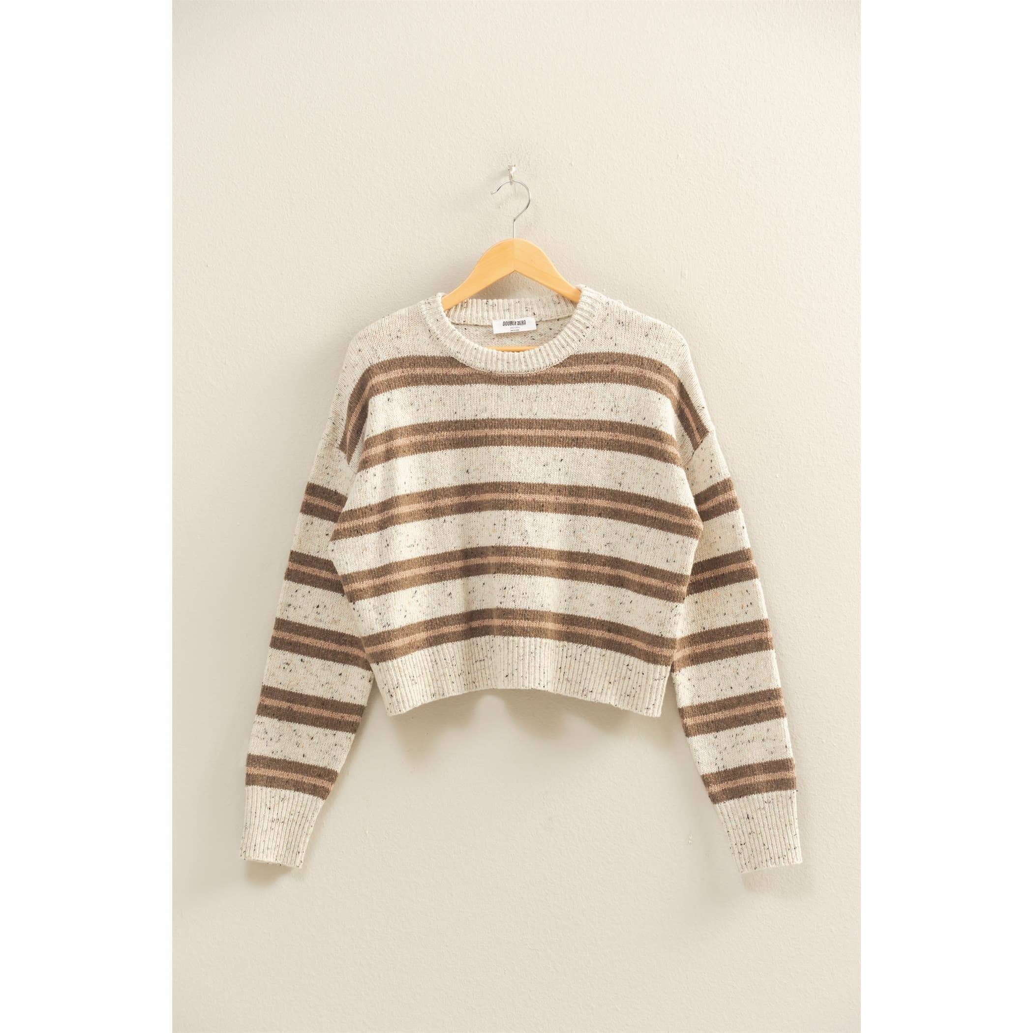 This sweater exudes a relaxed silhouette marked by horizontal stripe detailing, perfect for versatile styling. Its soft texture ensures comfort, making it ideal for layering during cooler months. Style with denim for a casual outing or pair with tailored trousers for a refined yet cozy ensemble.