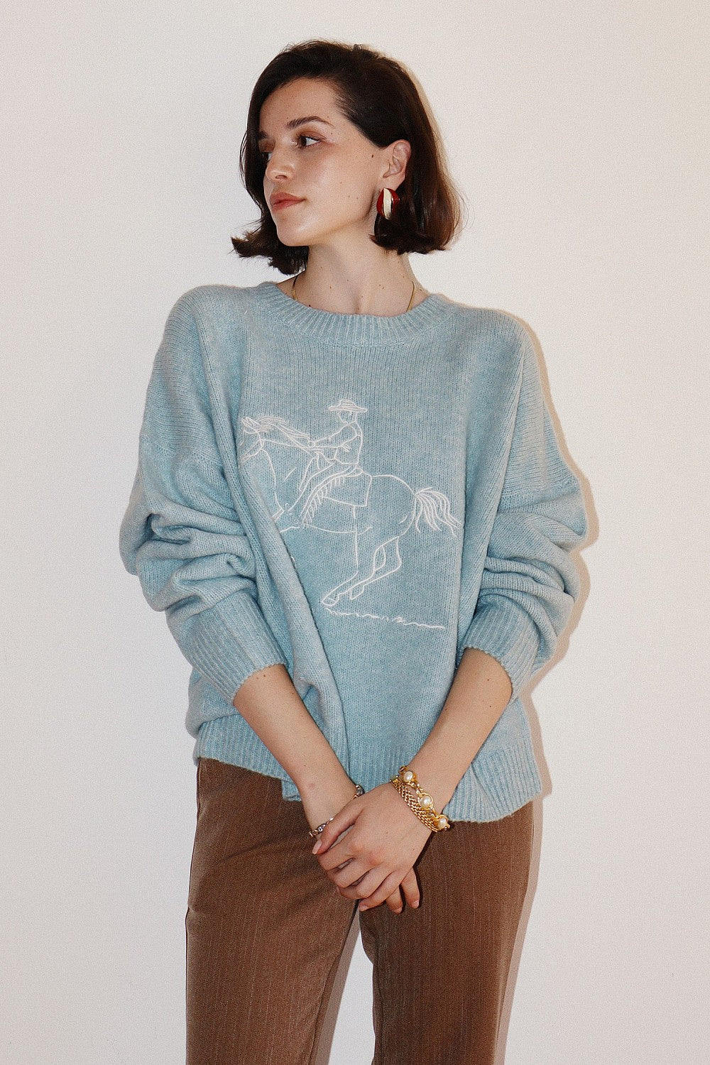 Embroidered cowboy knit sweater