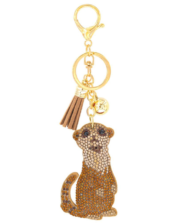 Sparkle studded meerkat keychain with clip and ring. Perfect for your keys, belt loop or bag!