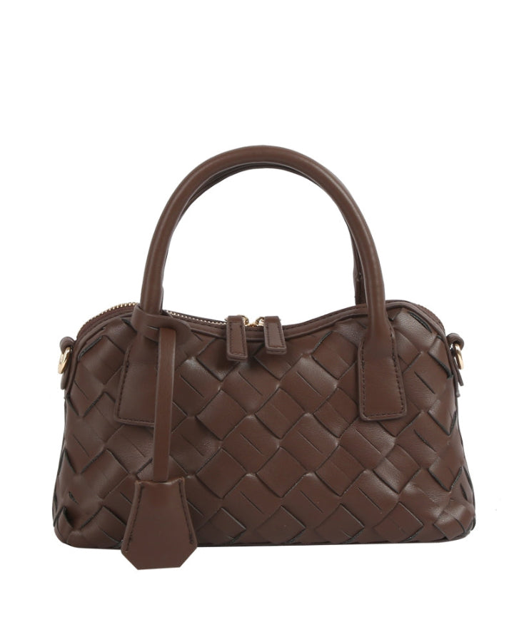Espresso Leather Woven Satchel Bag