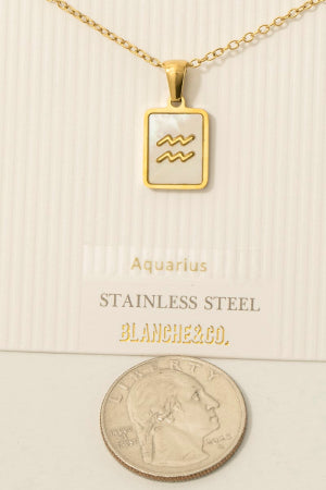 This necklace brings a luxurious stainless steel mother of pearl square zodiac pendant style. Experience the joy of accessorizing with this piece that effortlessly combines versatility and charm.