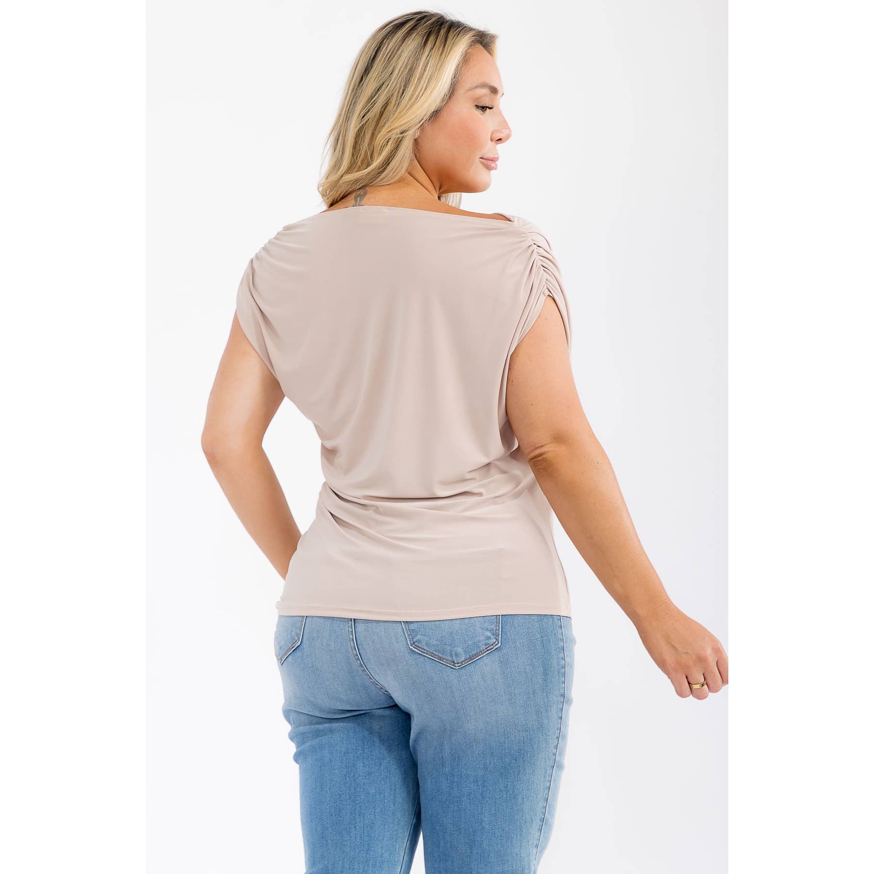 Embrace your curves with our Plus Size Off Shoulder Ruched Detail Top from Curve Market. This knit top is specially designed for the style-savvy plus size woman, offering a chic, trendy look that's hard to find elsewhere. The off-shoulder design and ruched detail add a touch of elegance, perfect for any occasion. Our sizing may vary, with 1x fitting sizes 12-14 (BUST 39-42", WAIST 33-36", HIPS 40-44"), 2x fitting sizes 16-18 (BUST 42-44", WAIST 36-39", HIPS 44-48"), and 3x fitting sizes 20-22 (BUST 44-46", WAIST 39-42", HIPS 48-52"). Emphasize your style and accentuate your figure with this unique piece from our collection.