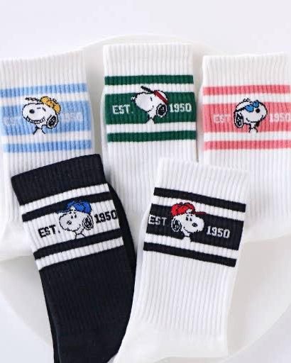 Snoopy Sports Crew Ankle Socks : Sky Line