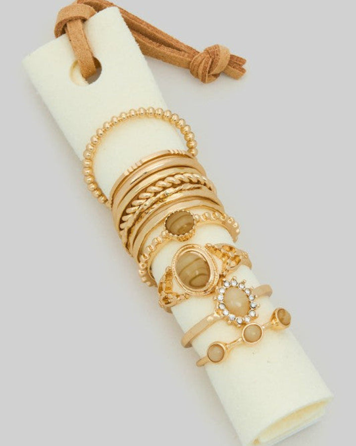 Add playful charm to your look with this twelve piece ring set featuring glossy resin stones in a mix of eye catching colors and shapes. Perfect for stacking or wearing solo each ring adds a trendy pop of style that complements any outfit from casual to chic.