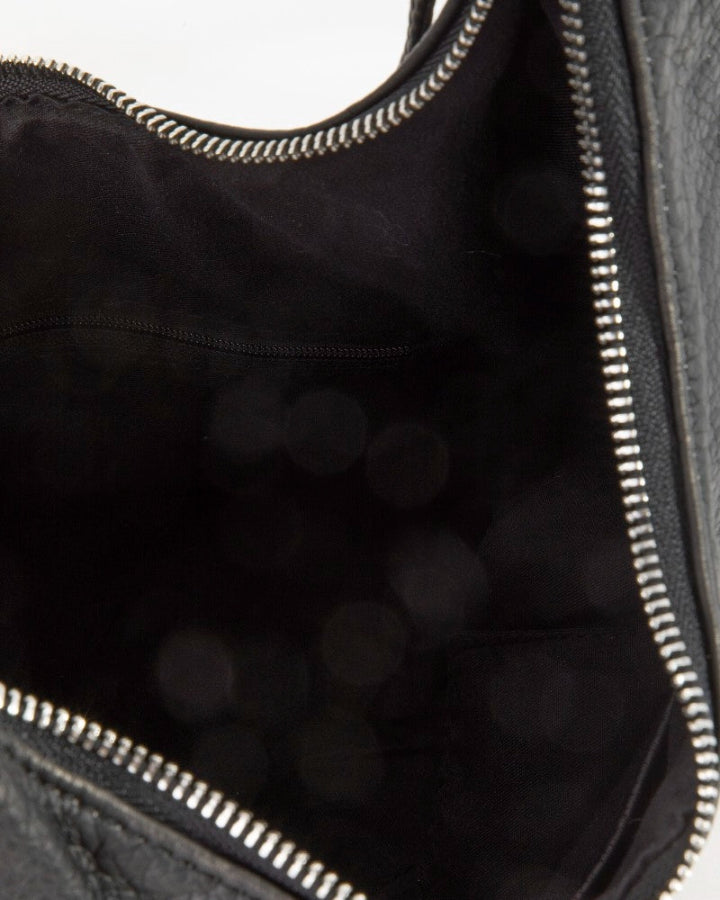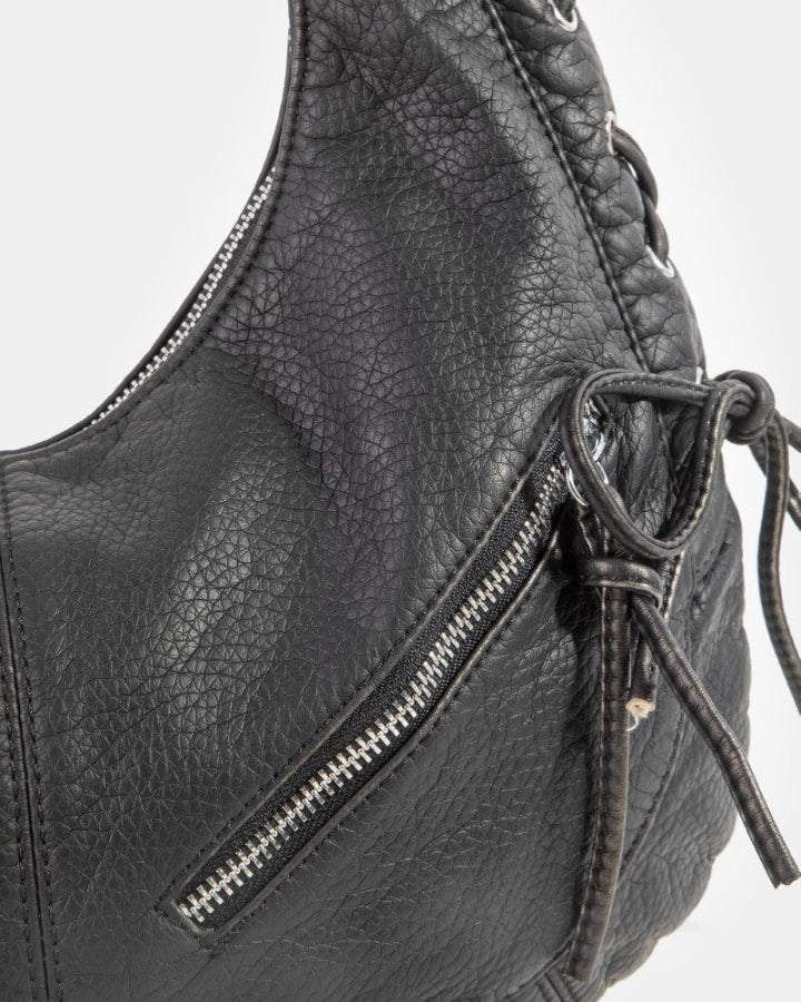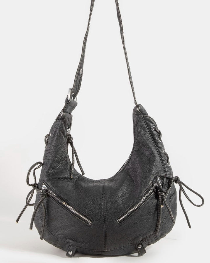 Black Zipper Crescent Shoulder Bag
