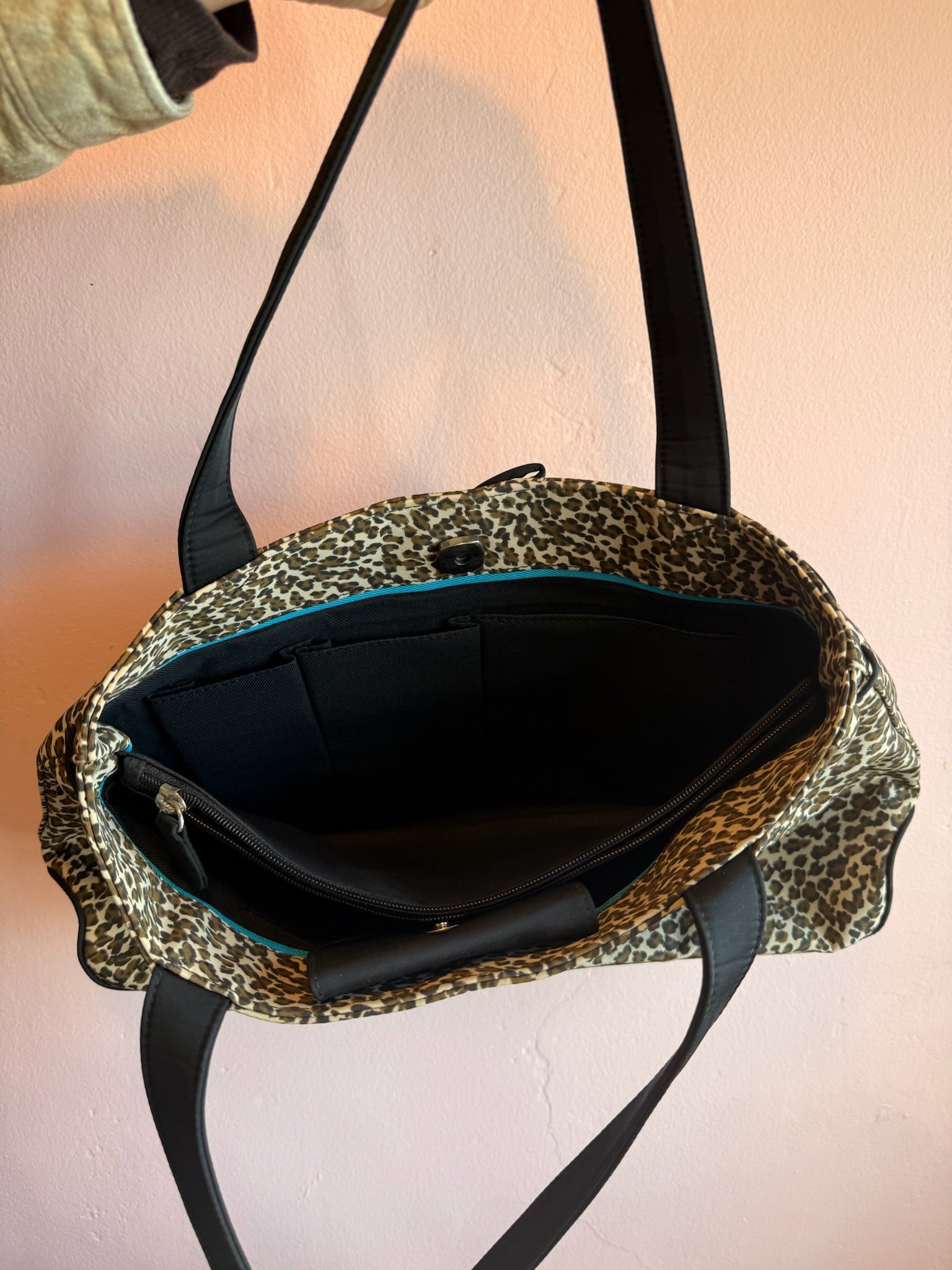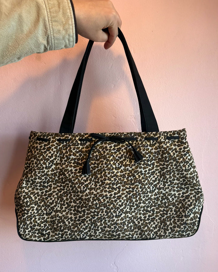 Prowl into style with this vintage Jaguar print purse—a wild take on timeless elegance. Featuring a striking big cat design paired with sleek black accents, this medium-sized bag strikes the perfect balance between statement piece and everyday essential.