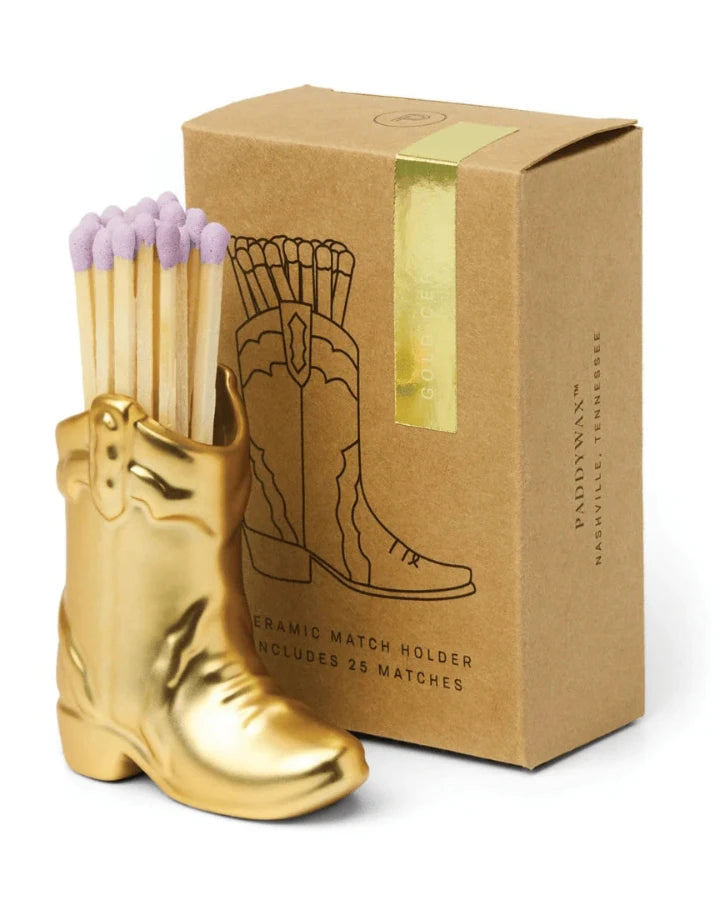 We're head over boots for our home in Nashville, TN! This vintage-inspired ceramic cowboy boot match holder includes 25 safety matches that are easily lit with a strike on the bottom of the boot! After the safety matches run out, this holder is compatible with any match and can provide light by striking on the rough ceramic surface. Whether you are daydreaming about being back in the Music City or wanting a Western vibe, these ceramic boot and hat accessories make the perfect gift set or bookshelf accessory.