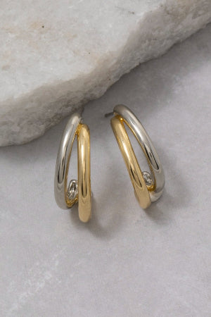 This pair of hoop earrings brings a luxurious gold dipped two tone layered style. Witness the perfect fusion of style and functionality as this pair of hoop earrings effortlessly complements your lifestyle.