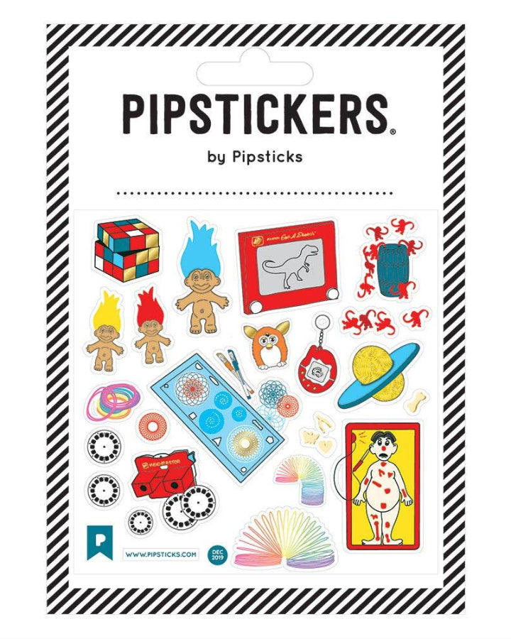 PipStickers are the PERFECT gift for the sticker lover in your life - even if its you! These unique PVC designs with holographic gold foil accents come on a clear backing and cannot be found anywhere else.Includes one 4 x 4 sheet ofNostalgic ToysPipStickers and includes the Pipsticks manifesto.