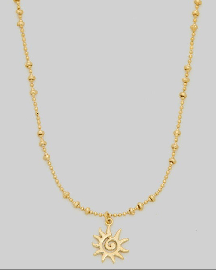 Shine bright with this spiral sun pendant necklace featuring a polished design that catches the light beautifully. Crafted with a sleek ball chain measuring 16 inches plus a 2 inch extender for a perfect fit, it's an effortless statement of charm and radiant energy.