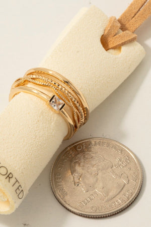 • This ring set introduces a stunning mixed 5pc band rings set style. Unveil modern elegance with this subtly intricate ring set.