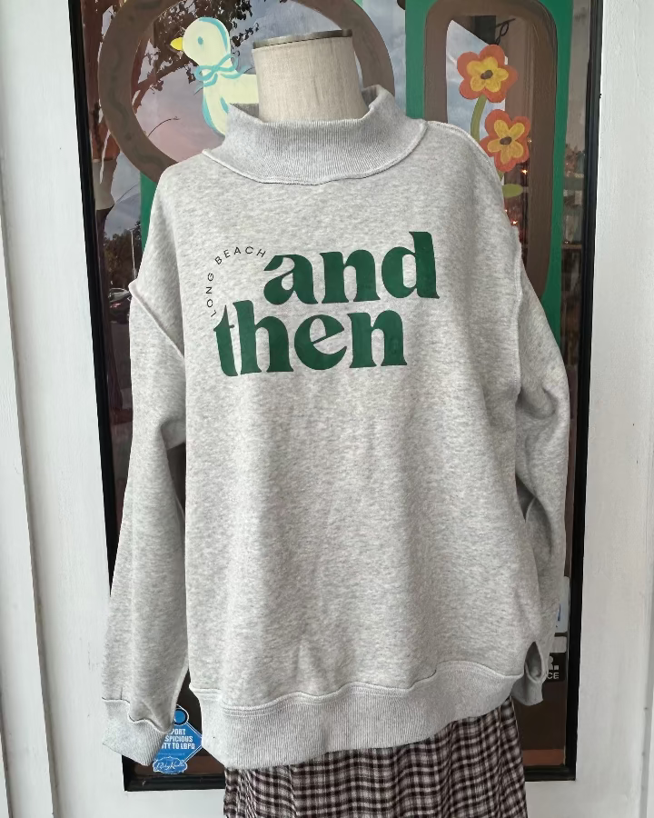 Our sweatshirts are getting a major upgrade! This mock neck silhouette has an oversized fit with a forest green graphic that will keep you cozy! Just add hot apple cider.