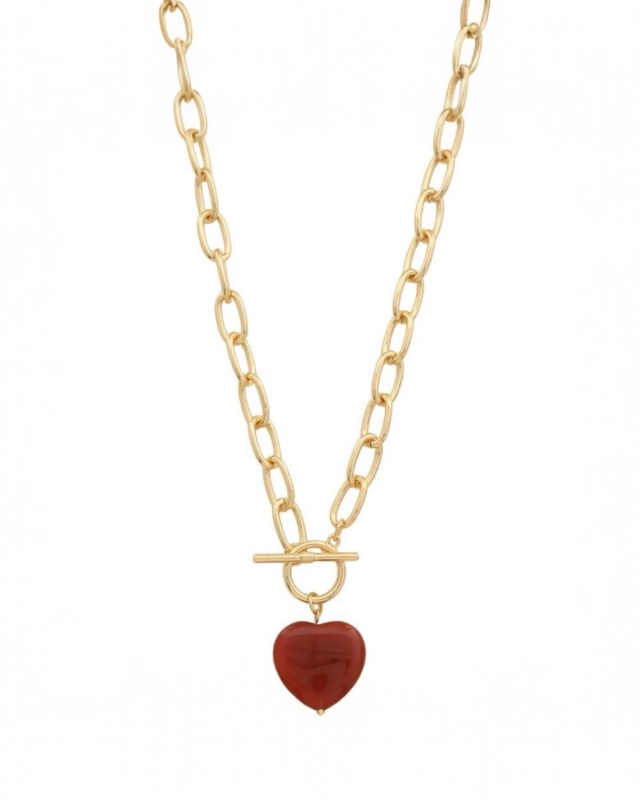 Heart Charm Toggle Clasp Oval Link Metal Necklace