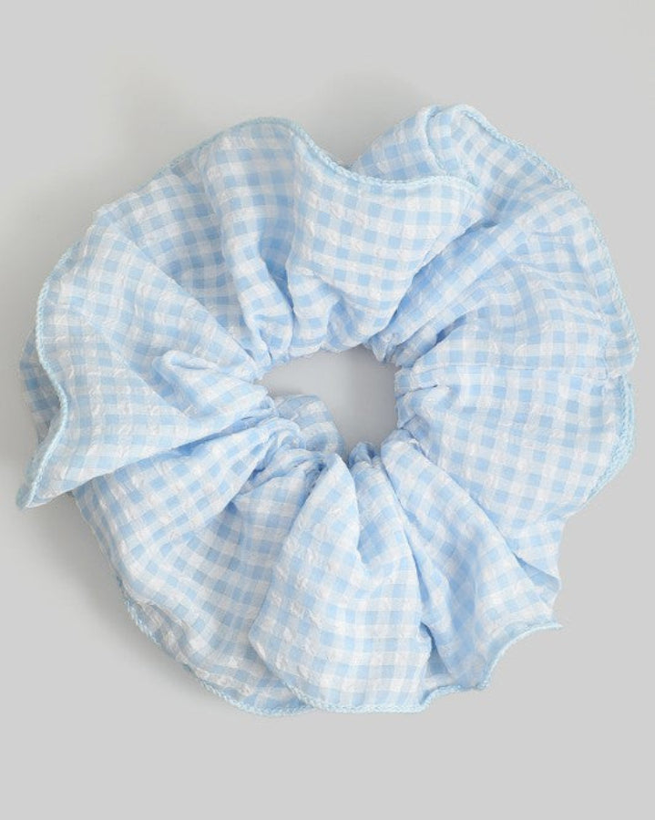 Oversized Blue Gingham Hair Scrunchie