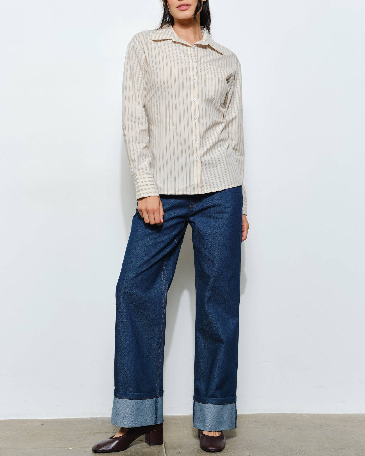 Upgrade your style with the Vera Button Up Shirt! This timeless piece features crisp striped fabric, a classic collared neckline, and a front button closure for that polished look. Long sleeves with cuffs add sophistication, while the self tie at the back lets you cinch the waist for a flattering, feminine silhouette. Perfect for work, weekends, or anytime you want to look effortlessly put together.
